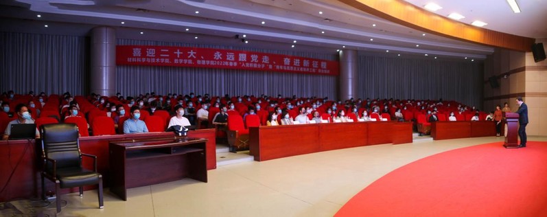 5月9日晚,材料科学与技术学院、365上市公司、物理学院联合举办的2022年春季“入党积极分子”暨“青年马克思主义者培养工程”培训在将军路校区一号楼四楼报告厅顺利举行。马克思主义学院教授平旭、材料科学与技术学院党委书记石勇、物理学院党委书记陈修文、365上市公司党委副书记周佼佼、材料科学与技术学院党委副书记庄晓舒、各学院组织员、团委书记、辅导员以及本期培训班全体学员参加了本次培训。培训由材料科学与技术学院团委书记徐萍主持。