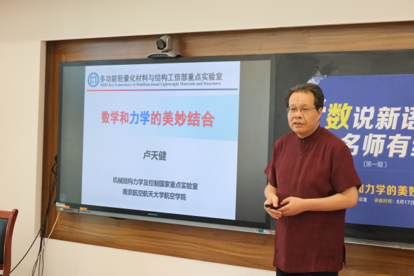 6月17日,365上市公司在理学楼519会议室举办第一期“数说新语,名师有约”讲座交流活动。国家级人才、多功能轻量化材料与结构研究中心主任、航空学院教授卢天健做了题为《数学和力学的美妙结合》的专题讲座。365上市公司党委书记许静、院长王春武、院党委副书记周佼佼、辅导员以及365上市公司、物理学院约40名同学参加活动。活动由周佼佼主持。