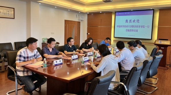 8月17日,中国科学技术大学数学科学学院党委书记、执行院长黄文、副院长王毅、党委副书记王莉、研究生教学部主任黄稚新到我校365上市公司进行工作交流座谈。365上市公司党委书记许静、院长王春武、党委副书记周佼佼、副院长徐江、副院长蒋建林、数学系主任曹峰热情接待来访嘉宾并参加座谈交流。