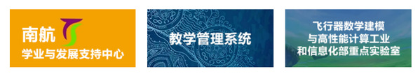 底部为学校和学院相关系统的快捷接入(学业与发展支持中心、教学管理系统、飞行器数学建模与高性能计算工业和信息化部重点实验室、数学建模网、会议室/讨论室预约系统等5个系统)以及校内外链接。