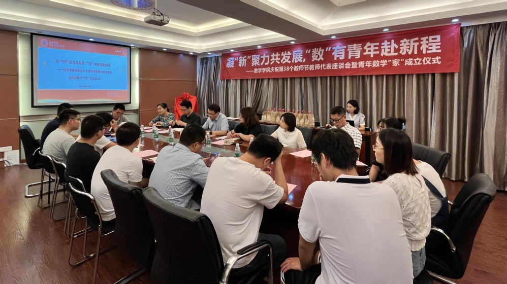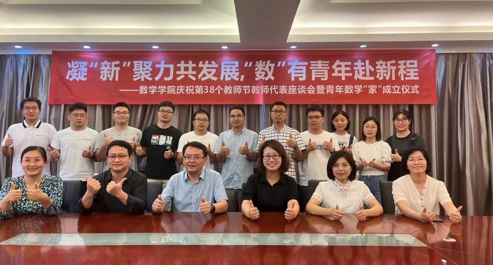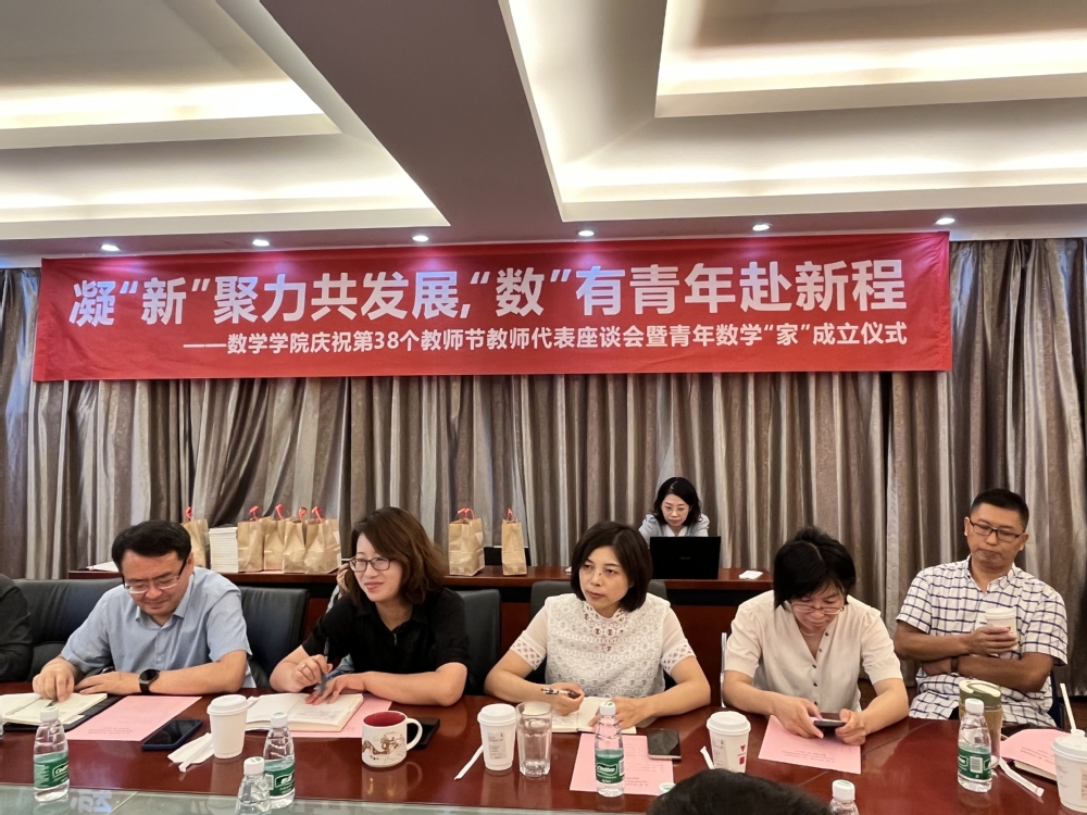 9月8日,365上市公司庆祝第38个教师节教师代表座谈会暨青年数学“家”成立仪式在理学楼517召开,365上市公司党委书记许静、院长王春武、党委副书记周佼佼、院长助理韩薇、龚跃政、潘茂东、吴健以及十余名青年教师参加了本次活动,活动由副院长徐江主持。