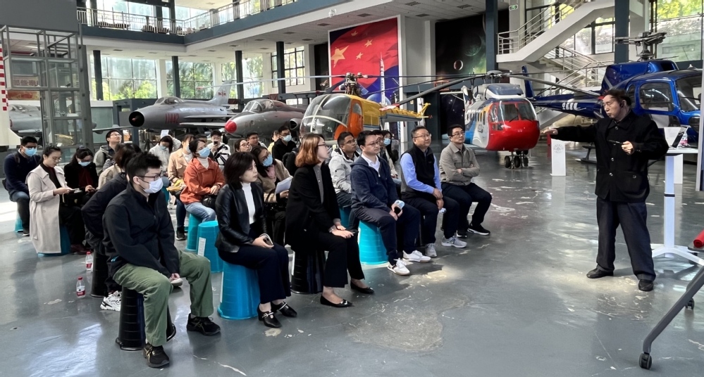 昂教授首先向大家讲述了馆内不同型号飞机的结构与背后的故事。站在某型号直升机前,昂教授回忆起我国曾历时四年成功研制出整机性能达到国际第三代水平的直升机,这是我国高端装备制造的重大突破。这次突破填补了我国大型民用直升机研制的空白,使我国大型直升机研制能力与欧、美、俄齐头并进,实现了民族梦想,人民期盼。昂教授借此进一步阐释了南航的历史使命,让老师们对“南航精神”有了更深刻的理解,对“航空报国”有了更具象的感受。