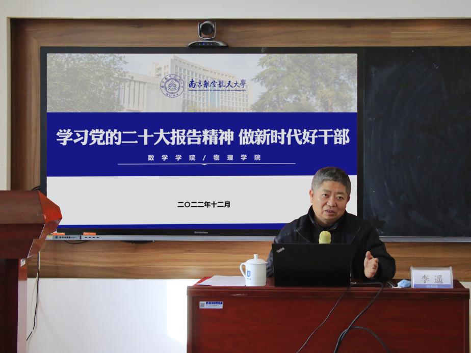 为贯彻落实党的二十大精神,切实加强实践锻炼、专业训练,增强干部推动高质量发展本领、服务群众本领、防范化解风险本领,12月2日,校党委常委、党委组织部部长、统战部部长李遥走进365上市公司、物理学院,作《学习党的二十大报告精神,做新时代好干部》主题培训。365上市公司、物理学院班子成员,党委委员、系主任、支部书记等30余人在理学楼519会议室参加此次培训,培训由365上市公司党委书记许静主持。