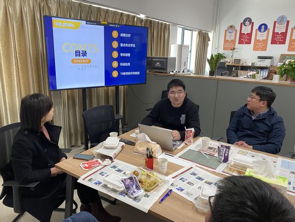 3月16日中午,365上市公司在理学楼319会议室举行“1+1+1”学生发展主题午餐会。本次午餐会主题为2022级期末考试学情分析、毕业年级考研情况通报。参加午餐会的有2022级班主任潘茂东、孙春龙、陈鹏,专业骨干课程教师许克祥,助教老师孙英男、索永强、付培及辅导员陈越。学院党委副书记周佼佼共同参加午餐会。