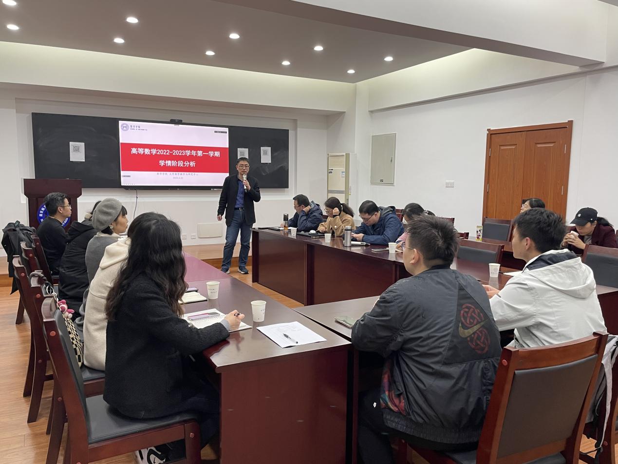 为深入贯彻学校《公共基础课程教学团队建设与管理办法》,提升公共基础课程教与学的建设质量,进一步加强人才培养中心地位,2023年3月22日下午在理学楼321会议室,365上市公司召开高等数学学情分析研讨会,高等数学主讲教师、相关学院教学办主任、教务老师以及大一辅导员参加会议,会议线上线下同步进行。会议由365上市公司副院长蒋建林主持。