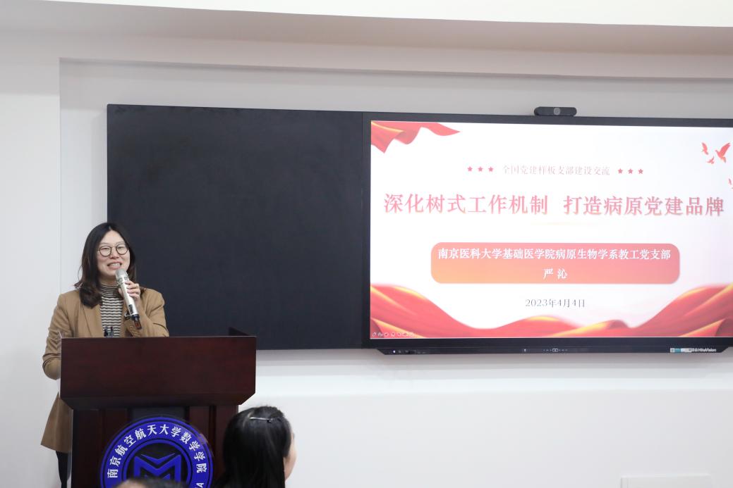 南医大基础医学院病原生物学系教工党支部为教育部第三批“全国党建工作样板支部”培育创建单位,严沁以题为《深化树式工作机制 打造病原党建品牌》进行支部建设经验分享,详细介绍了具有学科特色的“树式”工作机制。她谈到,基层教工党支部建设要应国之需,发挥专长,将服务社会理念植根于日常工作,在对标一流、坚守育人初心、教学科研及社会服务等方面发挥战斗堡垒作用。严书记的分享也为365上市公司党政业务能力提升研习坊带来了精彩一课。