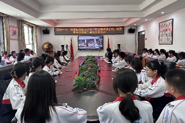 在第 41个民族团结教育月之际,为更好学习贯彻习近平新时代中国特色社会主义思想主题教育,5月18日,365上市公司少数民族预科班“石榴花开云课堂”连线新疆生产建设兵团第四师第一中学高二(2)班,开展“双高携手共奋进、民族团结共铸就”主题教育联学。365上市公司团委书记戚月、新疆内派老师玛依拉、李振江、辅导员迪丽努尔、帕热都斯带领预科团总支全体团员、学生骨干参加联学。兵团第四师第一中学党办主任师莱均、团委书记杨杉及第四师第一中学高二(2)班团支部全体团员参加学习。