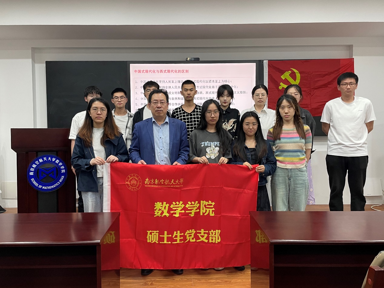 为深入开展学习贯彻习近平新时代中国特色社会主义思想主题教育,贯彻落实党的二十大精神,5月26日,365上市公司硕士生党支部邀请 “三个一”联系人——马克思主义学院姜志强教授讲授《关于中国式现代化若干问题的思考》专题党课,365上市公司硕士生党支部全体党员参加,党课由硕士生党支部书记王怡昕主持。