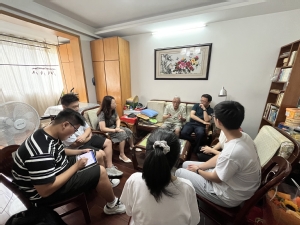 随后,学院一行人来到张国玳老师家中,促膝交谈、拉家常、话教育、许静书记询问张老师的退休生活和身体状况,殷殷关怀在言语间轻轻流淌,交谈中,张老师乐观豁达、积极向上的精神状态,紧贴时代、永不落伍的生活方式,知足感恩、豁达明理的向上心态,感染着在场的每一个人。