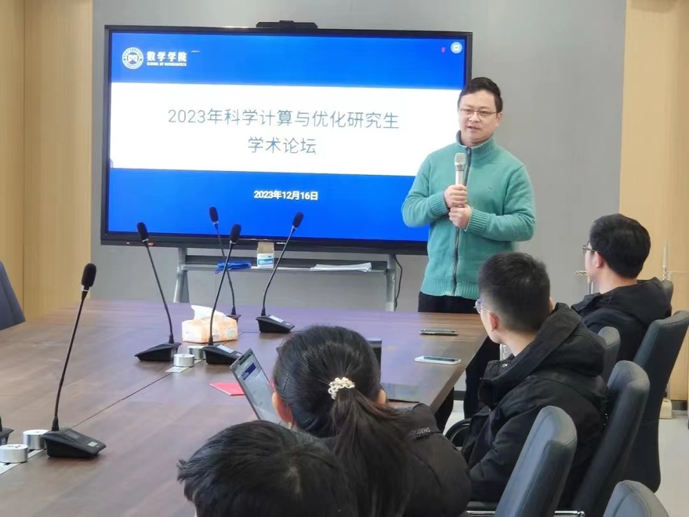 为了促进研究生内部“立足学术、加强交流、锻炼表达、志在提升”,推动研究生科研领域的宽度与深度发展,拓展研究生科学研究的视野和范围,提升研究生问题凝练能力,锻炼研究生的学术表达能力,365上市公司计算科学系“2023科学计算与优化研究生学术论坛”于12月16日上午在工信部重点实验室12017报告厅顺利举办。副院长徐江、院长助理龚跃政、计算科学系主任龚荣芳,青年教师代表,博士后、以及硕博研究生等20余人参加。论坛由龚荣芳主持。