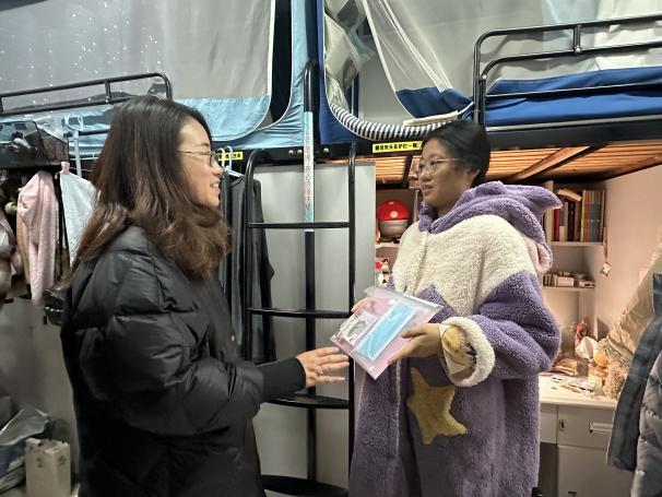 学院为考研学生精心准备了考研加油礼包,包括暖手宝、口罩、文具、巧克力等,贴心实用的小礼物,让正在冷冬中紧张备考的考研学子们感受着来自学院的爱与温暖。