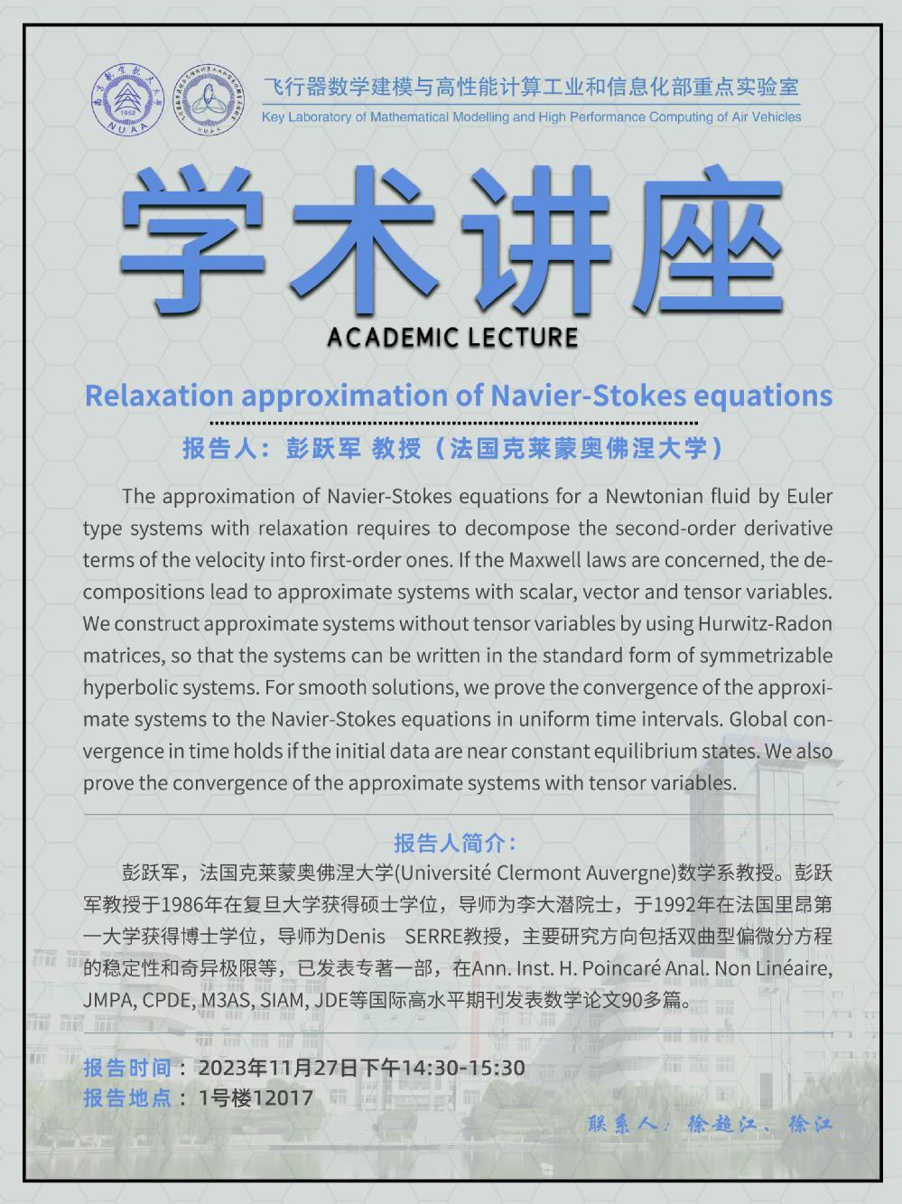 【学术讲座11.27 彭跃军 法国克莱蒙奥佛涅大学】