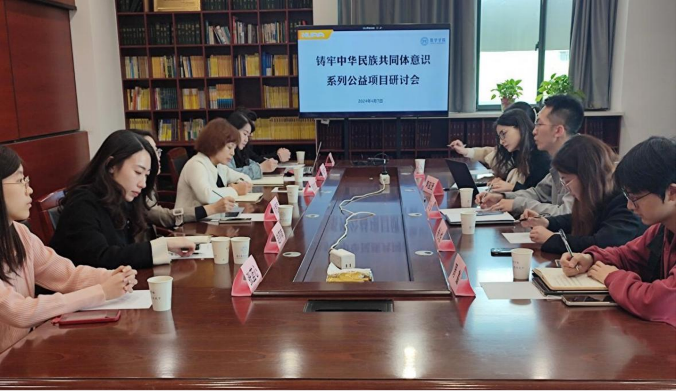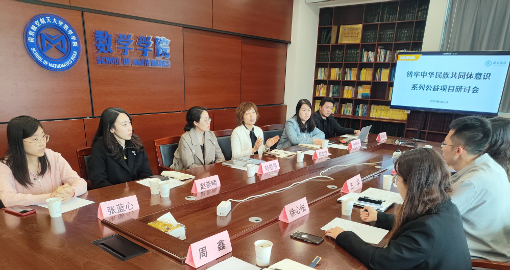 4月7日上午,“铸牢中华民族共同体意识”系列公益项目研讨会在理学楼302会议室召开。江苏省妇儿基金会副理事长王华、江苏省同读好书共芸窗研究院资助部部长黄玺澄,365上市公司党委副书记周佼佼、辅导员张鹤千,人文与社会科学学院党委副书记刘思辰、团委书记赵燕喃及南航公益创业代表徐心悦、张芳菲、周鑫、张蓝心、郭启凡等共同参加研讨。
