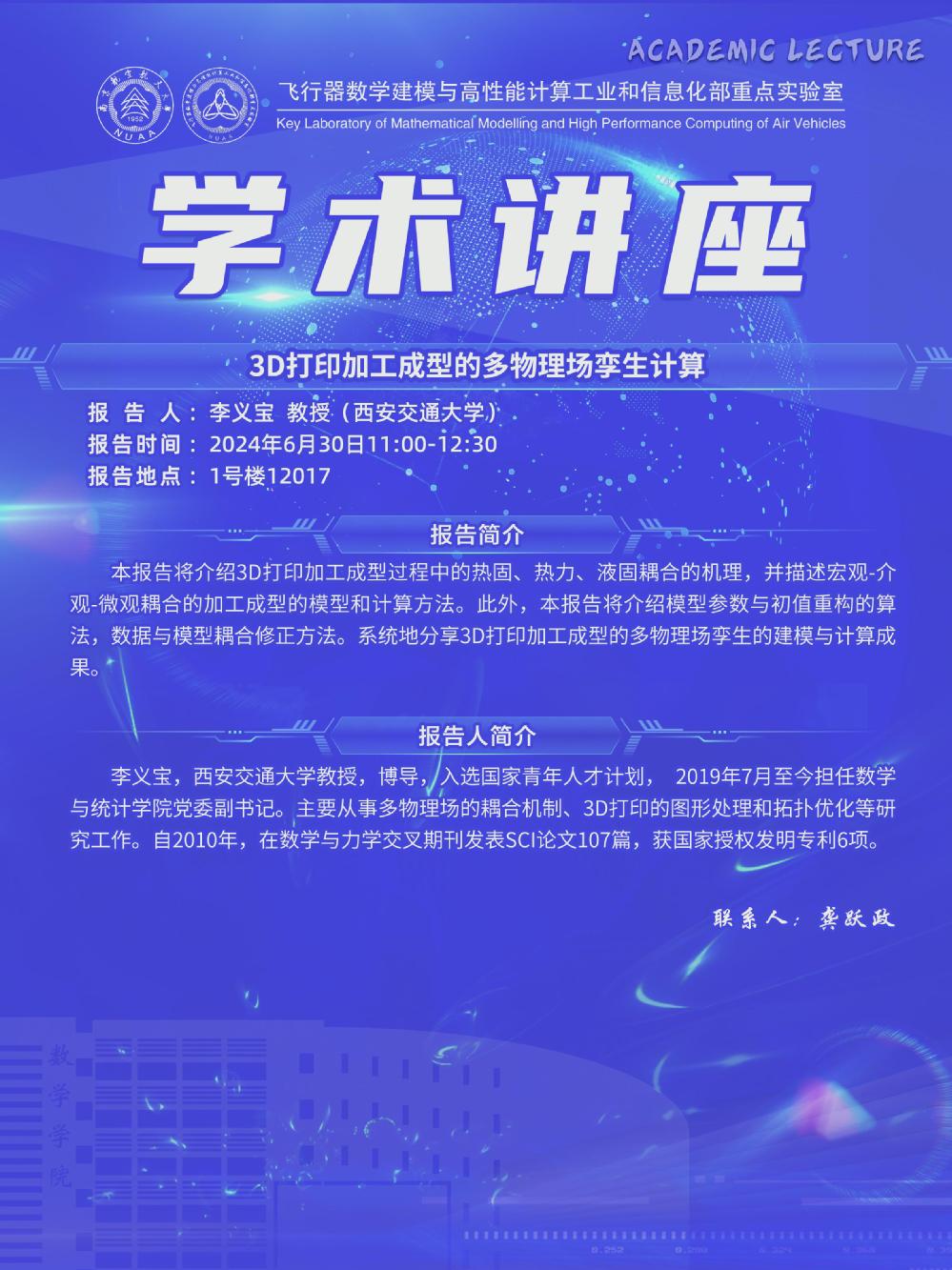 【学术讲座6.30 李义宝 西安交通大学】
