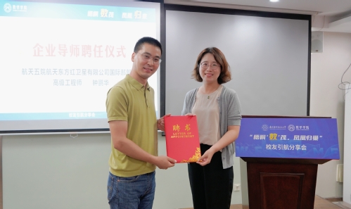 在“梧桐‘数’茂,凤凰归巢”校友引航分享会上,许静为钟鹏华颁发企业导师聘书,并表达对支持我院人才培养工作的感谢,以及对未来更深层次校企合作的期待。