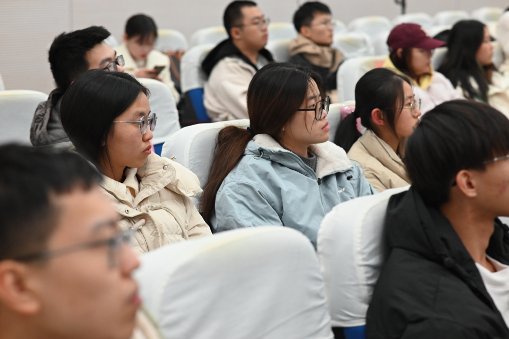 吴鸣耀从中国航空发动机的发展历史与中国航发南京航空动力有限公司的三次创业历程出发,讲述了一代“航发人”贯彻“匠心”精神,为中国航空发动机事业与国防事业筚路蓝缕、艰苦创业的动人故事,阐释了自强不息、艰苦奋斗、永不放弃的创业精神。回首过去,吴鸣耀分享了自身的成长经历。在艰难的条件下,他坚守“择一事,终一生”的“匠心”精神,致力于解决各种技术关键问题、技术改造及攻关难题。展望未来,他勉励同学们接过中国国防科技事业的接力棒,“丹心报国酬壮志,动力强军献毕生”,在与祖国同频共振中实现自身价值。