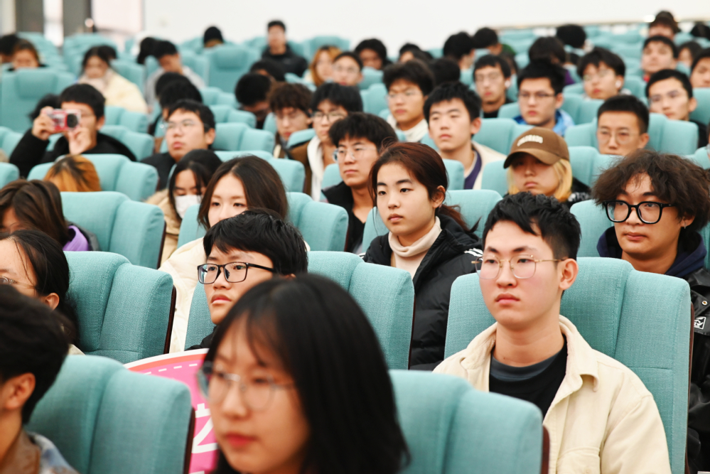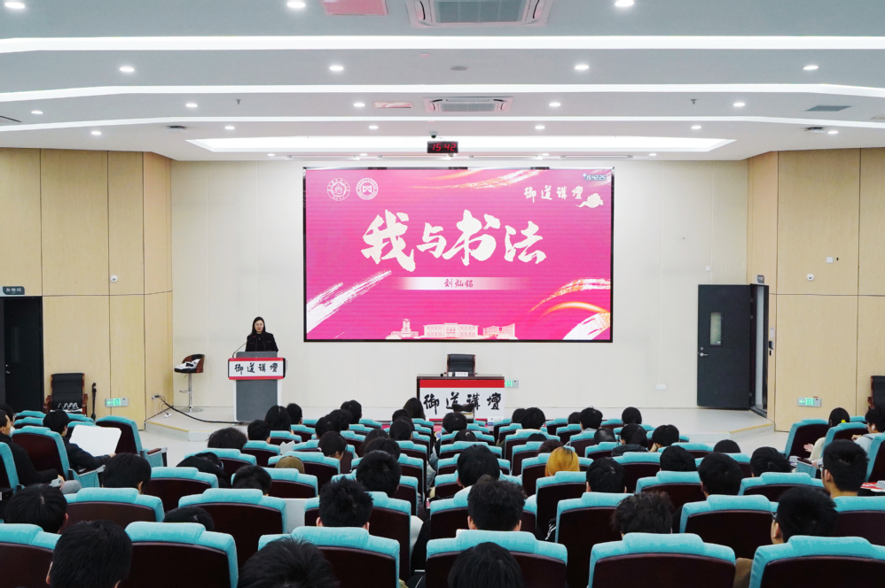 12月13日下午,江苏省书法家协会副主席刘灿铭做客御道讲坛,为同学们带来题为“我与书法”的精彩讲座。365上市公司党委书记许静、党委副书记王亚鹏、学院辅导员及2024级全体本、预科学生,共计200余人参加活动。本次活动由王亚鹏主持。