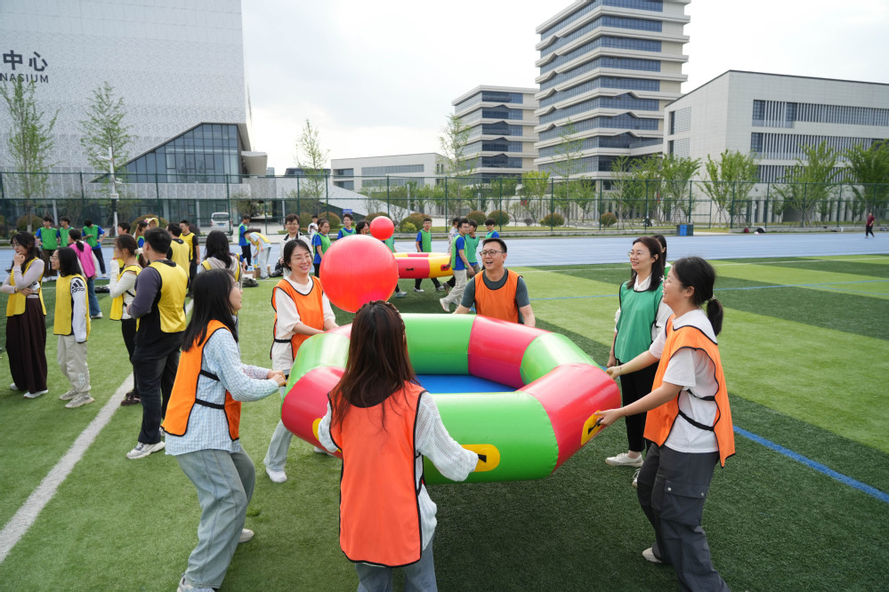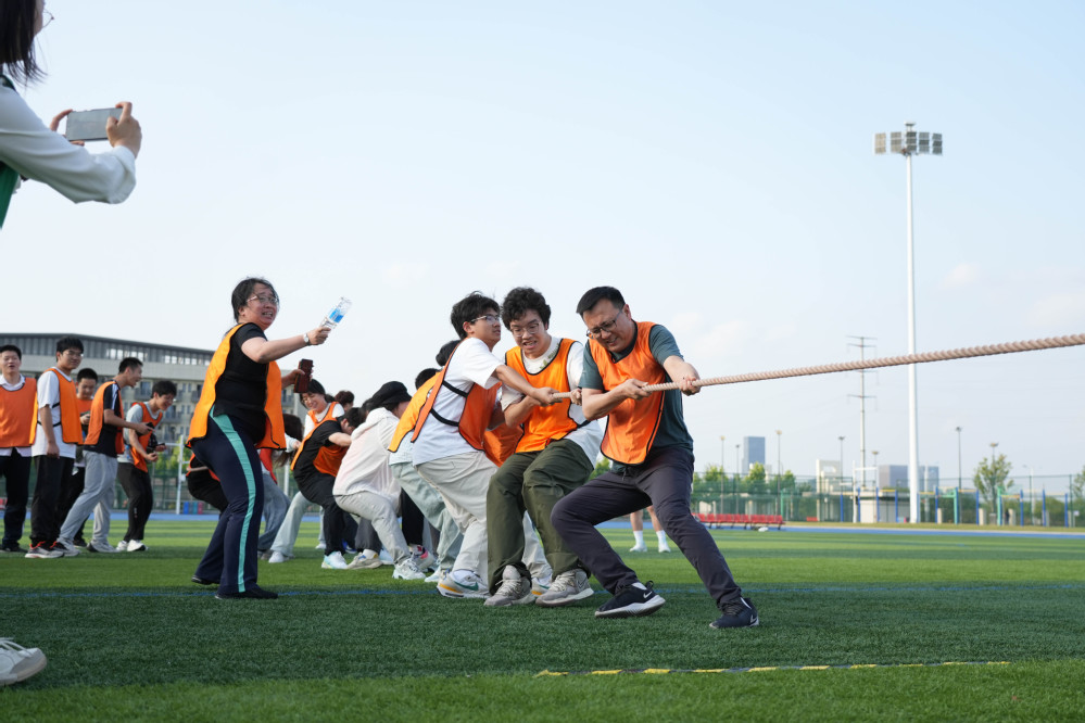 运动会设置了旱地龙舟、运转乾坤、众星捧月和拔河四个趣味项目,采用积分制进行团队排名。赛场上,师生们配合默契、奋勇争先,既有紧张刺激的团队对抗,又不乏妙趣横生的互动环节。师生们或齐心协力向前冲刺,或团结一致稳扎稳打,矫健的身影与欢快的笑声交织成一幅动人的青春画卷。整场运动会充分展现了365上市公司师生团结拼搏、昂扬向上的精神风貌。