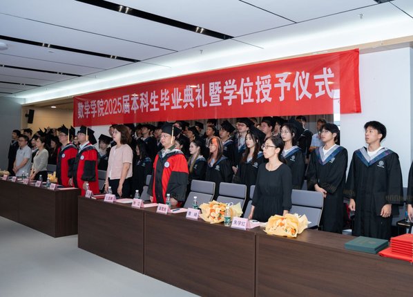 学位授予仪式的尾声,全体师生起立,共同唱响校歌,365上市公司2025届本科生毕业典礼暨学位授予仪式圆满结束。带着在365上市公司积累的扎实学识与学院赋予的优良品格,满载着对母校的深切眷恋、对师长亲友的感恩之情,2025届毕业生将以昂扬之姿,奔赴人生新征程,在更广阔的天地中绽放青春光彩。