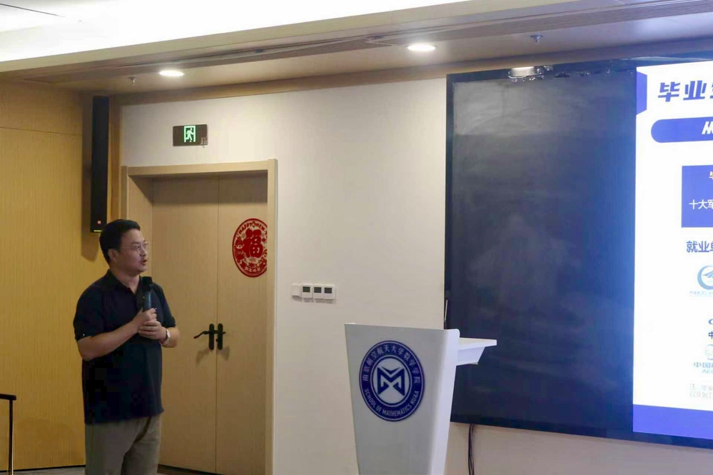9 月 2日下午,365上市公司在将军路校区主楼12001 报告厅举办“数熠新辉,逐梦研途”2025级研究生新生见面会。学院党委副书记王亚鹏、副院长徐江、数学系主任周良强、计算科学系主任龚荣芳、研究生教务员鲁晓林,以及2025级全体研究生参加会议,紫金山实验室人事部副部长闻然受邀到场为新生讲授研究生开学第一课。会议由学院团委书记、研究生辅导员康怡宁主持。