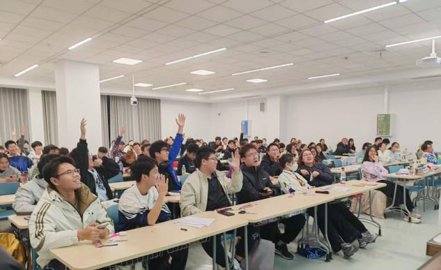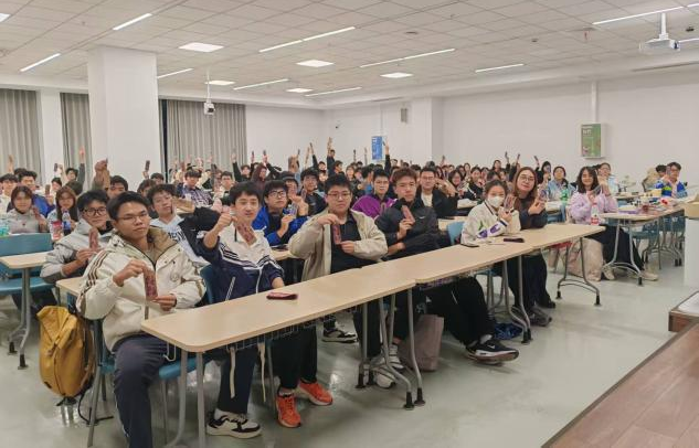 活动伊始,同学们精心录制的竹竿舞展示视频,瞬间将在场师生带入北海涠洲岛的多元地貌、德天瀑布的飞瀑流泉之中。互动体验时,各族同学围坐一堂,巧制壮锦书签、细尝荔浦芋头、共话工艺传承,氛围热烈融洽,尽显广西温润厚重的民俗底蕴与山水灵韵。