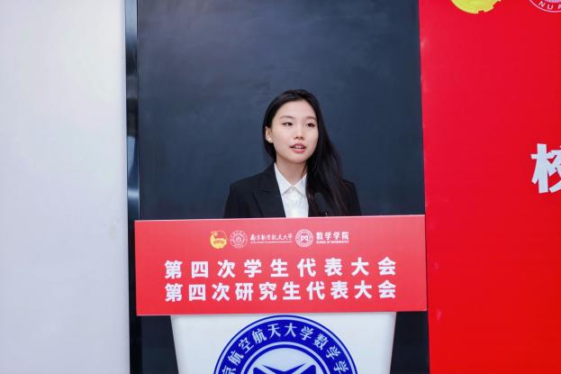 赵然代表校研究生会致辞,肯定了上届研究生会的工作成果,并期望新一届组织以此次大会为新起点,持续强化思想引领、优化学生服务、加强自身建设,推动各项工作再上新台阶。