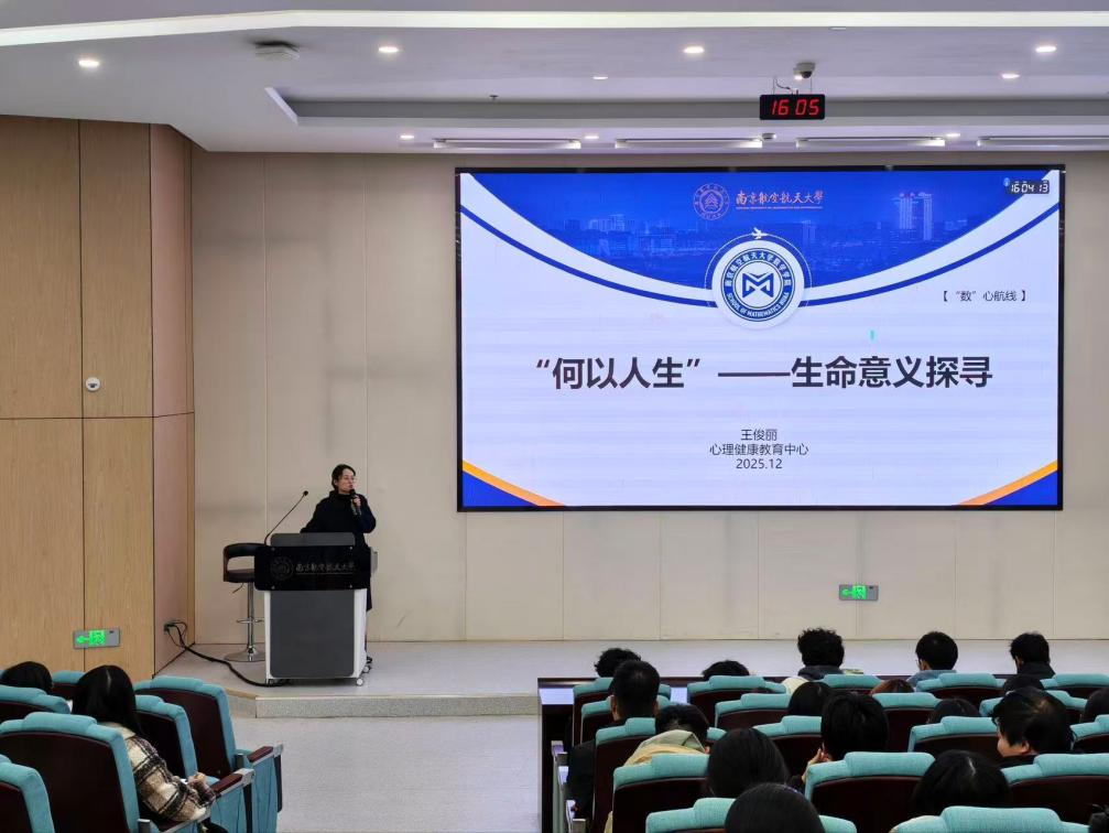 12月18日,数学学院举办“生命探索与期末考前心理辅导”主题讲座,本次讲座由心理健康中心王俊丽老师主讲,学院2024级本科生、2025级预科生共同参与此次活动。