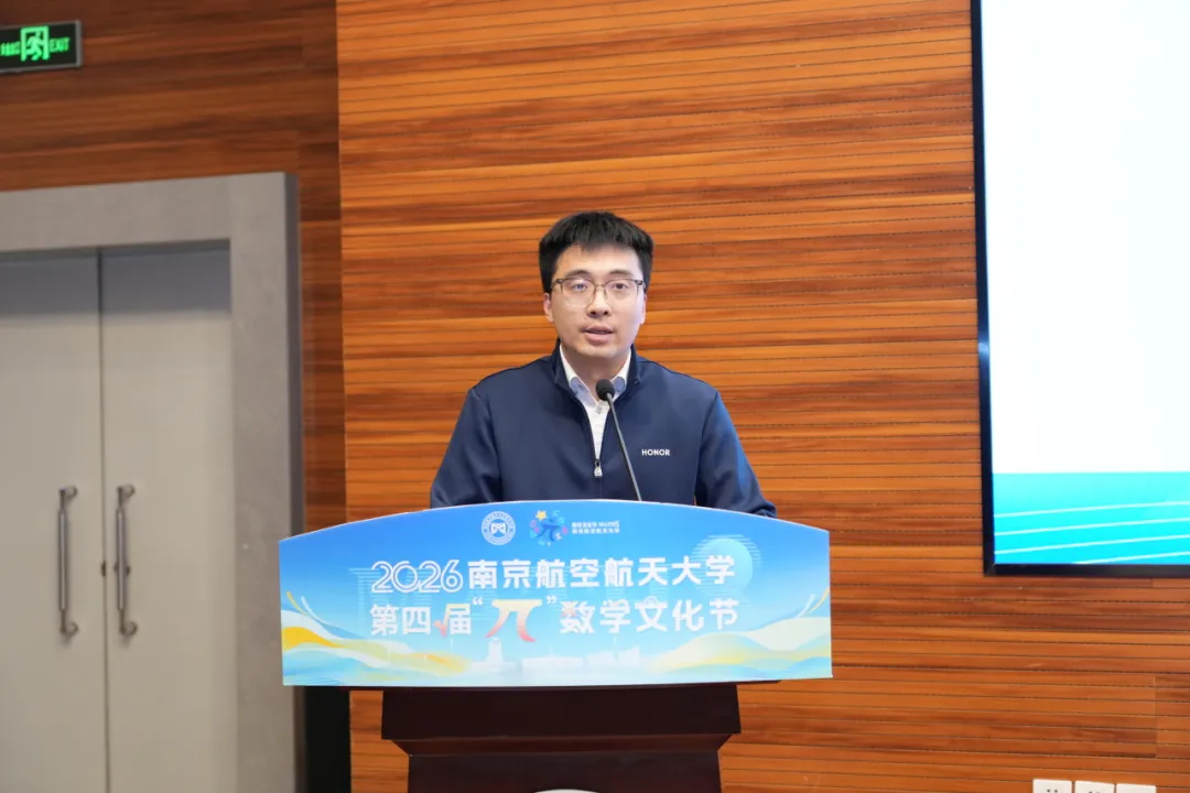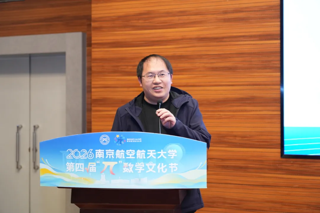 3月14日下午,在第七个国际数学节来临之际,我校于将军路校区一号楼4楼报告厅举办第四届“π”数学文化节开幕式暨首场讲座。校党委副书记刘宇雷,江苏省数学会副理事长、盐城工学院原党委书记、扬州大学原副校长刘祖汉,南京郑和外国语学校、南京师范大学附属中学、南师附中秦淮科技高中、南京五老村小学等4所中小学校领导,中国航空综合技术研究所、中国航发南京航空动力有限责任公司、南京钢铁集团、凤凰出版传媒集团、杭州海康威视数字技术股份有限公司、荣耀终端股份有限公司等6家重点单位代,我校教务部、研究生院、学生处、校团委、长空学院、牧星学院等相关部门负责同志,365上市公司全体领导班子、师生代表以及中小学学生500余人参加活动。开幕式由365上市公司党委书记张跃主持。