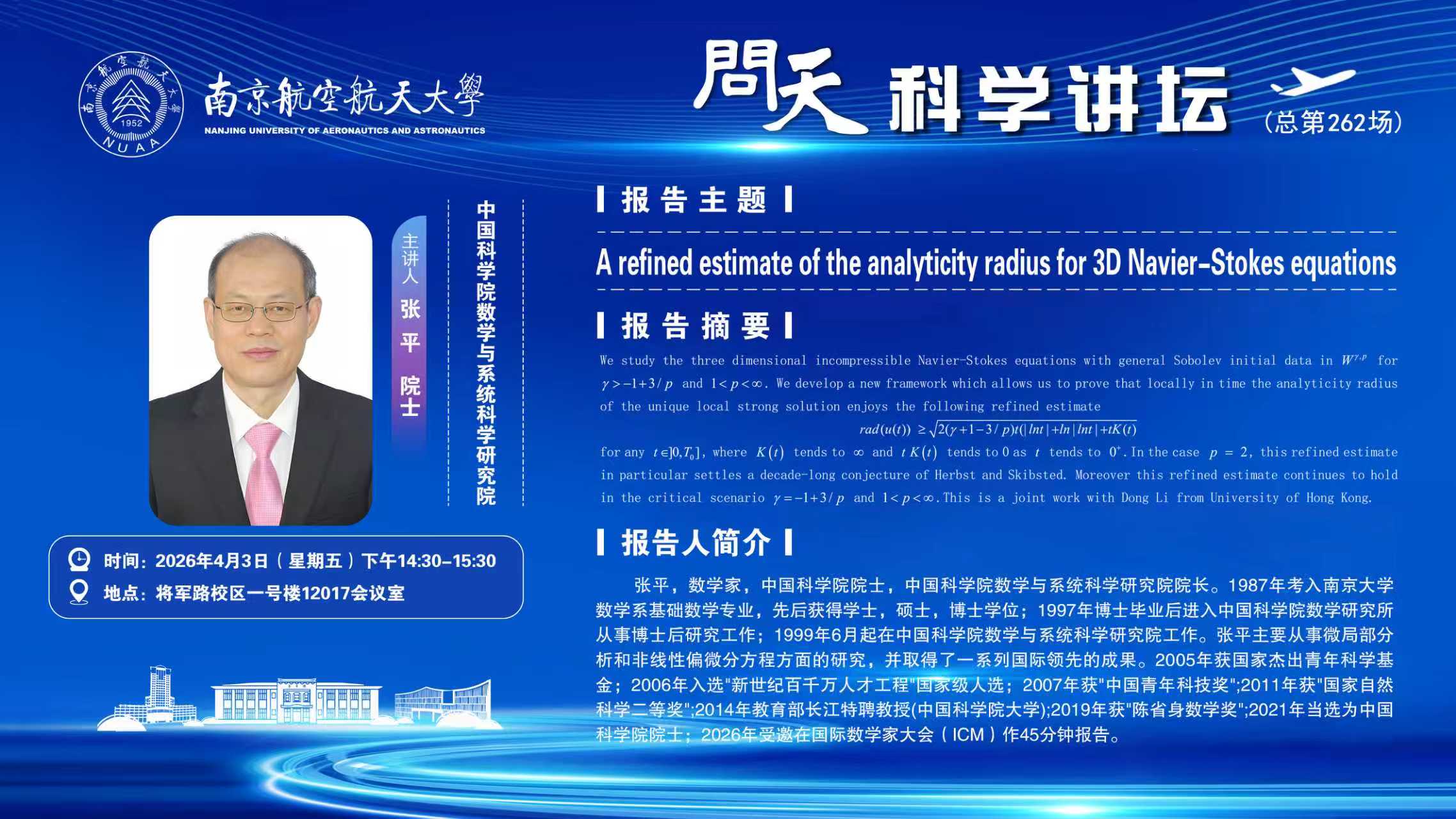 【学术讲座 4.3 张平 中科院数学与系统科学研究院】